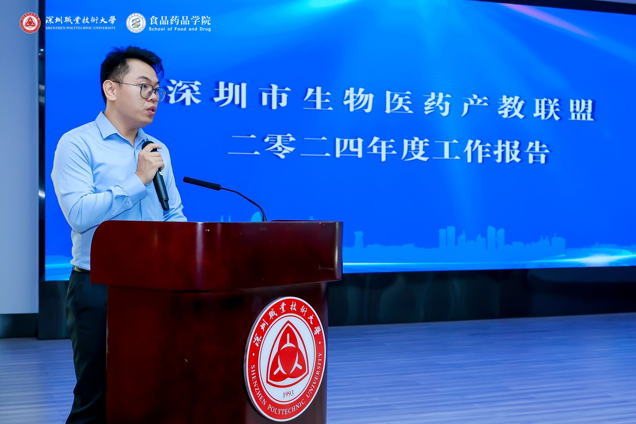 张作泰在致辞中指出,产教融合是实现教育链、产业链、供应链、人才链与价值链有机衔接的重要举措。深圳市食品行业产教联盟、深圳市生物医药产教联盟、成立一年来,联盟成员单位以新质生产力,引领食品产业、生物医药产业在前沿技术领域的“新”步伐,在食品质量与安全、食品营养与健康、药学、药品生物技术、制药工程技术专业人才培养、应用研发和社会服务等方面开展战略合作。我们的联盟“朋友圈”越来越大,走动越来越亲,一定能够形成更加紧密的产教共同体,集聚更多优势资源,变革人才培养模式,做实产学研用协同创新,为加快推进深圳市食品产业、生物医药产业高质量发展提供新思路、新实践、新机遇。
