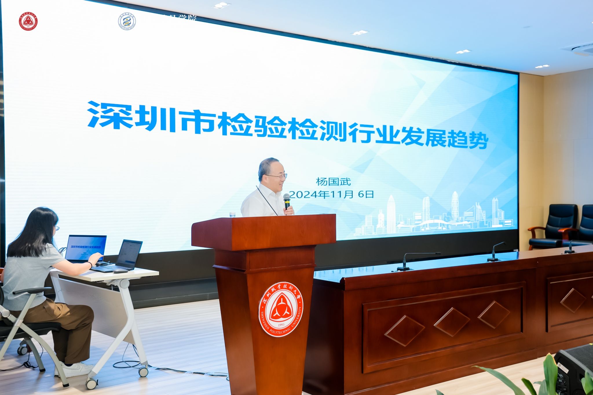 深圳市分析测试协会执行会长、教授级高工杨国武和深圳国家高技术产业创新中心生物医药研究中心主任王海旭分别以“深圳市检验检测行业发展趋势”“深圳生物医药产业发展情况与趋势分析”为题,从全球、全国、全市多维度分析了检验检测服务业、生物医药产业的发展情况,深刻剖析了行业特点、存在的问题并展望了未来发展趋势,为全体与会人员开拓了视野,引起与会代表的强烈共鸣。