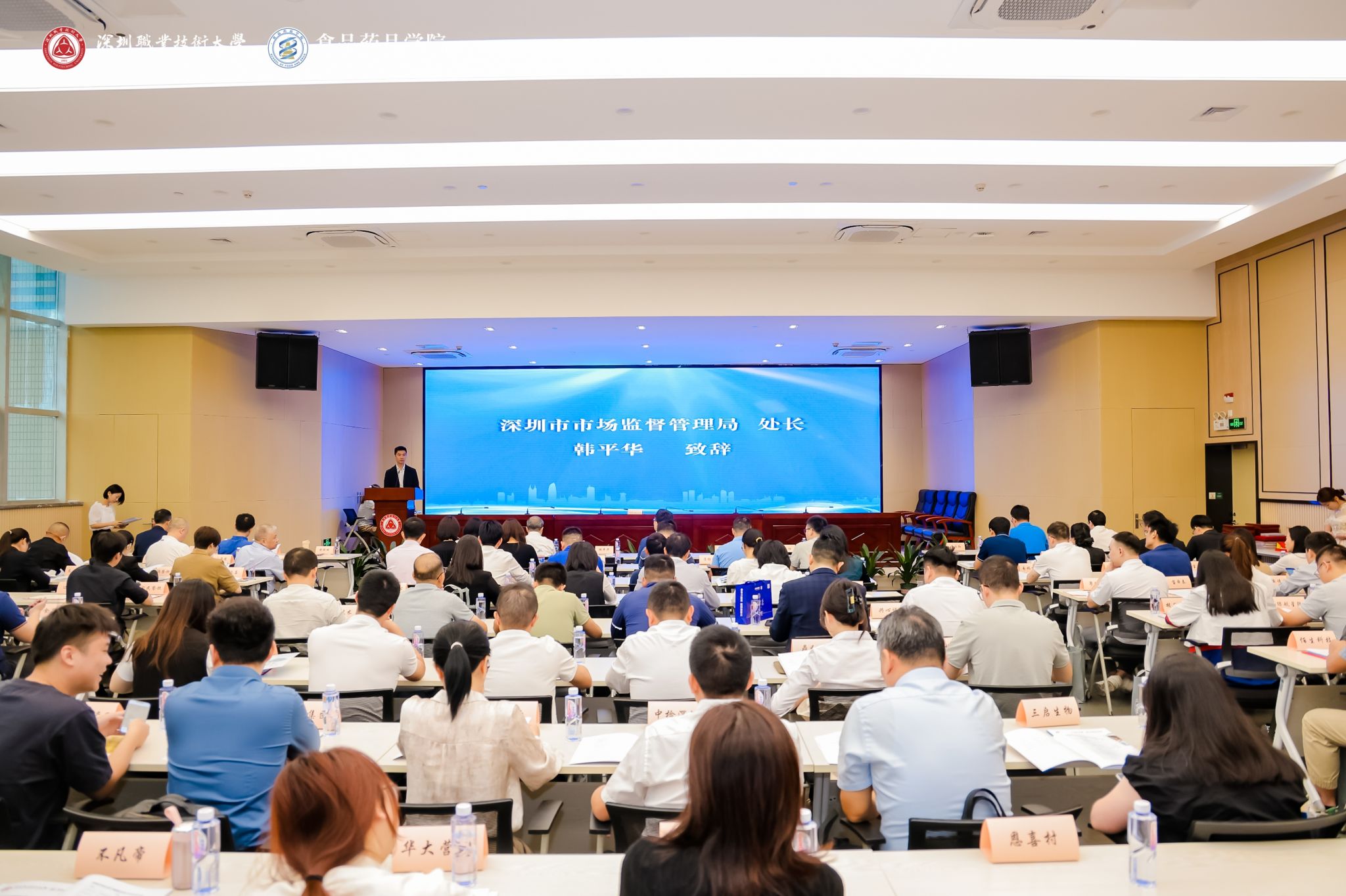 深圳市市场监督管理局食品经营安全监管处处长韩平华、药品安全监管处处长张天,开云官网副校长张作泰,开云kaiyun体育党委书记、院长刘冬等出席会议,深圳市食品、生物医药类相关行业协会(学会)以及领军企业、头部企业、专精特新企业等近200家企业270余人参加本次年会。会议分别由开云kaiyun体育副院长黄略略、本科教育学院制药工程技术专业主任张丽君主持。