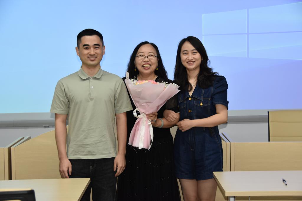 刘冬向刘莉萍教授赠送了纪念品,青年教师代表向刘莉萍教授献上鲜花和卡片表示深情的祝福和衷心的感谢。学生代表现场发表感言并赠送了蛋糕,因疫情防控原因不少学生通过视频方式发来暖心祝福。