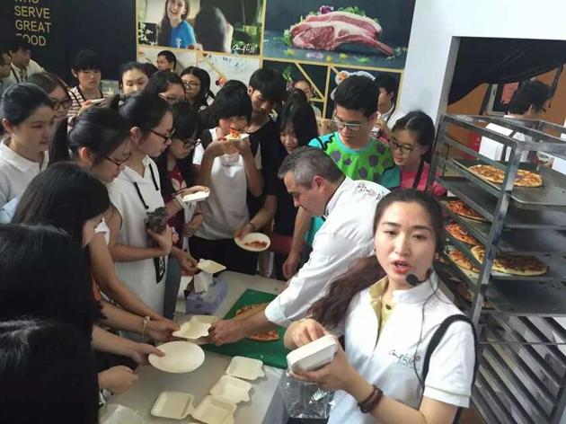 Pizza、冷冻芝士蛋糕、法式甜品、意面及法式芝士和翻糖等8场美食品鉴会,场场爆满。澳大利亚烹饪协会主席Neil Abrahams、可可百利亚太区首席技术顾问Andres Lara、马来西亚国王御用蛋糕师Leslie等国际西餐、烘焙大师更是亲临现场示范讲解,参展师生不仅可以足不出校园就品尝国际美食大师原滋原味的国际大餐,还可以面对面的向国际美食大师讨教食品加工工艺,感受美食之于艺术,美食之于中西文化融合的绝佳魅力,享受这场美食文化的盛宴。