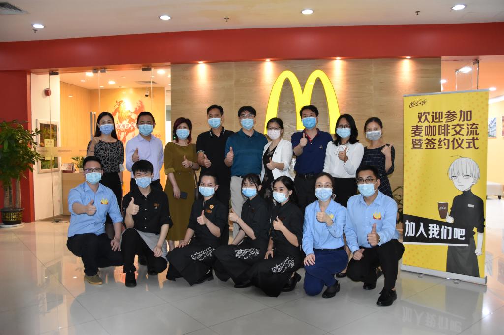 5月21日,开云官网化生学院与深圳金拱门食品有限公司签署“麦咖啡”项目合作备忘录,双方将整合各自的优质资源,围绕咖啡师创新人才培养、咖啡师认证标准研制、技能大师工作室、咖啡技能竞赛等领域进行深度合作,共同为推动餐饮行业提档升级提供智力、技术和人才支撑。麦当劳深圳市场总经理陈影宏、品牌拓展部总监李明、运营总监周丽影、高级人力资源经理郭淮、麦咖啡训练高级练顾问谢海珍、人力资源招聘顾问洪木利、招聘主任李品,化生学院院长林峰、副院长谢利娟、朱俊晨,食品专业群教师等出席并见证签约。